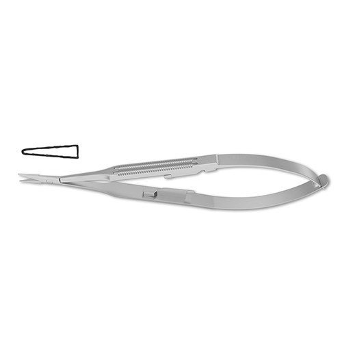 very delicate, 9.0 mm smooth jaws, flat wide handle, 5.1″ (13.0 cm)Â Castroviejo Needle Holder is a commonly used instrument in postoperative ophthalmologic procedures. The holder is commonly used for suturing corenoscleral wounds. The forceps feature very delicate tips and a locking mechanism as desired. Both straight and curved profiles are available depending on physician preference.