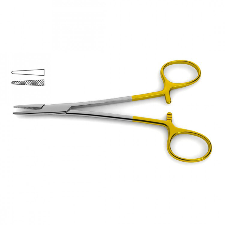 Halsey Needle Holder is handcrafted from German stainless steel and tungsten carbide inserts that provides control, precision and a dependable non-slip crosshatched surface. Available with smooth or serrated jaws and gold-plated handles in both standard and left-handed models. Originally designed for ophthalmic surgery, this needle holder can be used to grasp the suture and pass it through delicate tissues. Tungsten carbide needle holders provide unparalleled control while suturing. The precision-milled, pyramid-shaped teeth ensure a dependable, non-slip surface. Some needle holder styles are also available with smooth tungsten carbide jaws, designed to hold the smallest sutures in microsurgical and plastic surgery procedures. Tungsten carbide jaws are inherently more durable than stainless steel and clinicians will experience an extended service-life. These needle holders feature gold-plated handles.