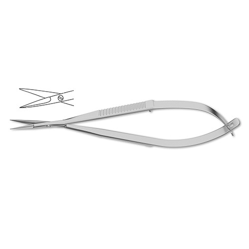 standard pattern, sharp tips, 4-1/2″ (11.5 cm)Â Iris Scissors are a multipurpose tool used in ophthalmologic and general surgery procedures. The scissors may be used for manipulating and incising tissue in an iridectomy or iridotomy. The spring loaded design with widely spaced handle gives the surgeon optimal control during the procedure. The scissors come in straight or curved patterns depending on surgical preference.