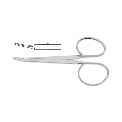 ribbon style ring handle, curved sharp pointed tipsStich Scissors are a particularly useful tool in posteroperative management of ophthalmologic procedures. The curved sharp blade is designed to remove stitches from the conjunctiva or eyelids following an incision. The scissors are available in two different working lengths depending on surgical preference.